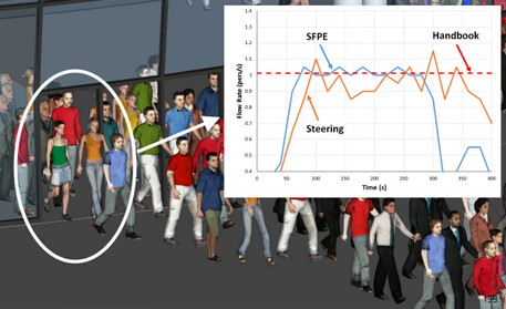 -Pathfinder人员疏散能力模拟软件两种移动仿真模式。在Steering模式里,门不会限制人群的流动,人与人之间会保持合理的间距。在SEPE模式里,人们并不会试图去避开对方,并且会互相拥挤,但是门会限制人群的流动,人员的流动是由空间中的人员密度控制的。